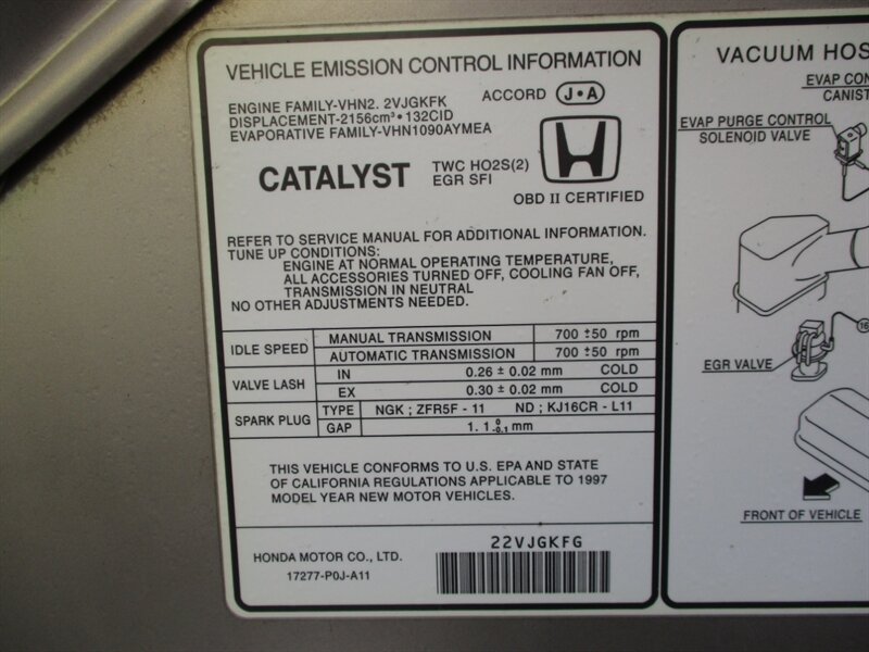 Introducing a well-maintained 1997 Honda Accord Special Edition, featuring a striking Silver exterior and a clean, comfortable interior. This model is powered by a reliable 2.0L NA I4 single overhead cam (SOHC) 16V engine, ensuring a balance of performance and efficiency. With an impressive mileage of under 102,000 miles, averaging less than 4,000 miles per year, this vehicle is a testament to longevity and care.