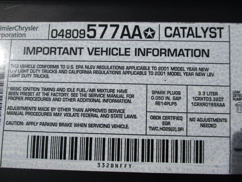 2001 Dodge Caravan Sport in Burgundy with a taupe cloth interior. Powered by the factory 3.3L Flex-Fuel V6 (180 hp, 210 lb-ft) paired to an automatic transmission and front-wheel drive. Factory equipment includes air conditioning, cruise control, tilt steering, power windows and door locks, power mirrors, an AM/FM stereo with CD, cloth seating, roof rack, rear wiper/defroster and standard dual front airbags and safety features. Below 135,000 miles (averaging under 6,000 miles per year), excellent overall condition with a clean CARFAX.