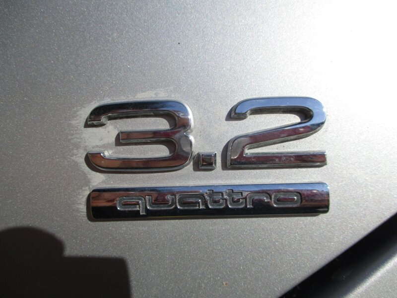 2005 Audi A6 3.2 quattro in Light Silver Metallic with an Ebony interior, powered by a 3.2L naturally aspirated V6 (24V DOHC) and Audi’s quattro all-wheel drive. Factory standard equipment includes automatic transmission, leather seating, power-adjustable front seats with memory, dual-zone automatic climate control, power windows/locks/mirrors, sunroof, cruise control, ABS with traction and stability control, full front/side/curtain airbags, alloy wheels, fog lights, remote keyless entry and an AM/FM/CD audio system with steering-wheel controls. This vehicle has excellent overall condition, a clean CARFAX, under 126,000 miles (averaging less than 6,000 miles per year) and EPA fuel economy of about 17 MPG city / 24 MPG highway.