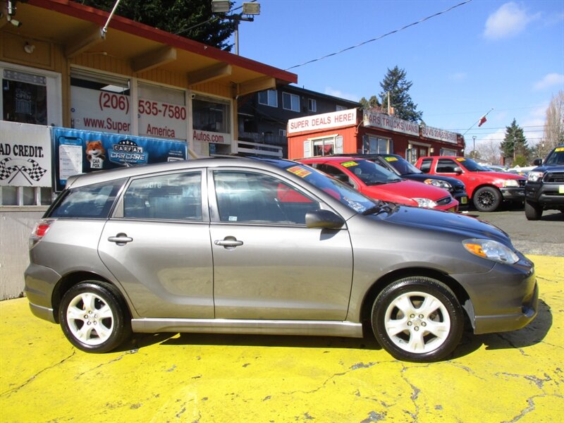 2005 Toyota Matrix All Wheel Drive powered by a 1.8L I4 (123 hp, 118 ft. lbs.) — clean CARFAX, one owner, below 145,000 miles (avg. <7,000 miles/year), and in excellent overall condition. Factory-standard features include air conditioning, cloth seating, 60/40 split-folding rear seats for added cargo flexibility, tilt steering, an AM/FM/CD stereo, power steering, power-assisted brakes, driver and front passenger airbags, front seatbelt pretensioners and LATCH child-seat anchors, intermittent wipers, rear wiper, and steel wheels with covers. Exterior: Gray. Interior: Dark Gray. Fuel economy: 22 MPG city / 29 MPG highway.