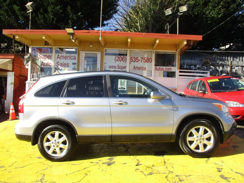 2007 Honda CR-V EX-L in Silver with a Black leather interior. Powered by a 2.4L I4 (166 hp / 161 lb-ft), this EX-L comes factory-equipped with leather-trimmed seats, power-adjustable driver’s seat, heated front seats, a power moonroof, roof rails, power windows/locks/mirrors, remote keyless entry, cruise control, and an AM/FM/CD audio system with six speakers. Standard safety equipment includes ABS, front side-impact airbags and full-length side curtain airbags, plus LATCH child-seat anchors. Excellent overall condition, clean CARFAX, under 147,000 miles (averaging <8,000 miles/year), and EPA-estimated 19 MPG city / 26 MPG highway.